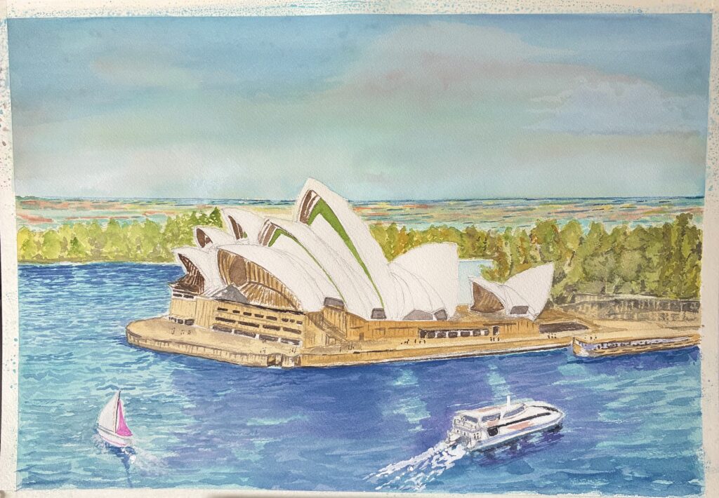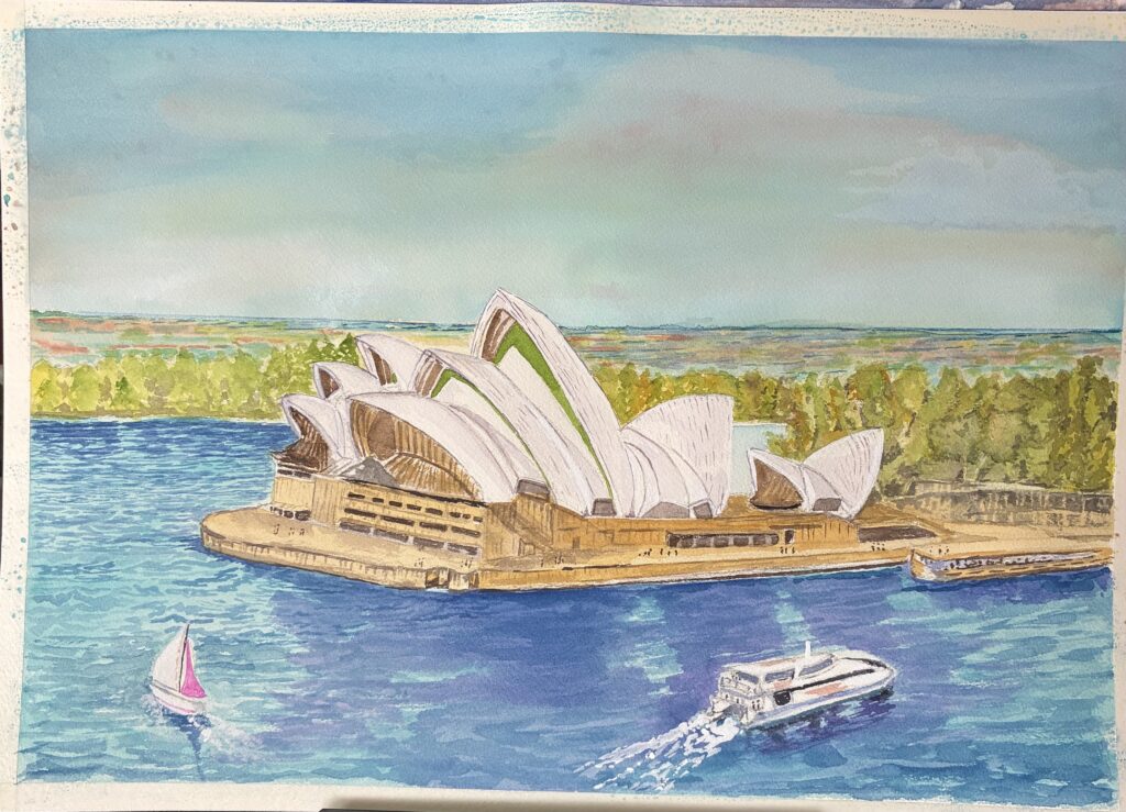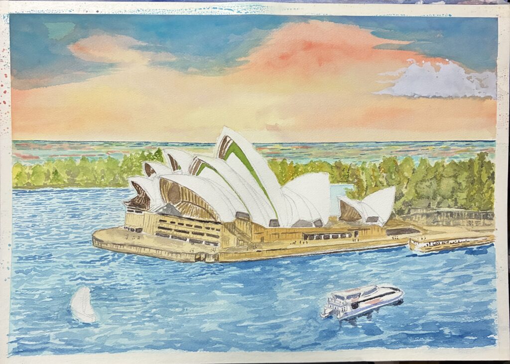 Art 73歳から始める水彩画⑨ paddle.a.life 2025年9月16日 私の父が水彩画を描いております。その中の作品です。今回も工程をご紹介したいと思います。 空が夕焼けな感じですが、 上塗りしてますね。どちらも良い感じ。 オペラハウス自体も少し着色。 ABOUT ME paddle.a.life このサイトでは一部広告を利用しています。 長年IT関連に従事し、サイト運営をはじめ、色々な事を実践中。 また、父の水彩画をデジタル画廊として公開中。 BLOG:https://www.paddle-a-life.com