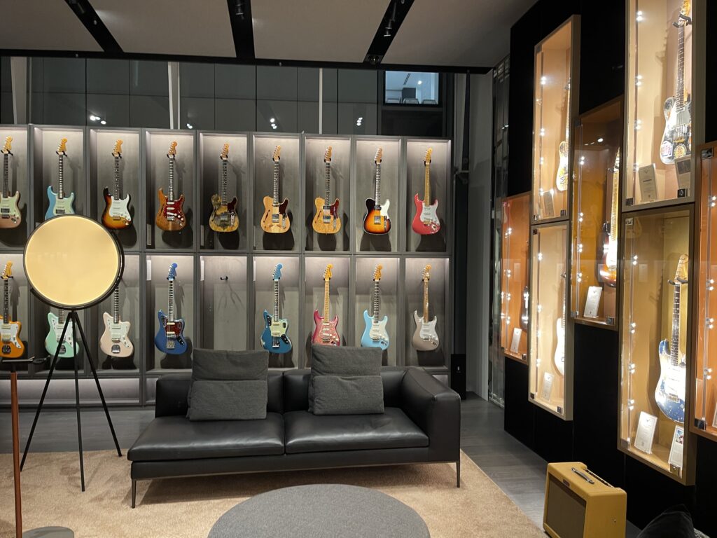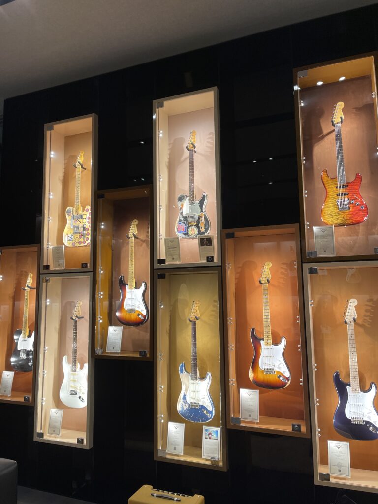 1階はライトめなギターも多かったですが、2階は体系ごとに展示されており、さすがこんなに多彩なFenderを一度に見れることはないと思います。(私の持っているモデルもありました。)
